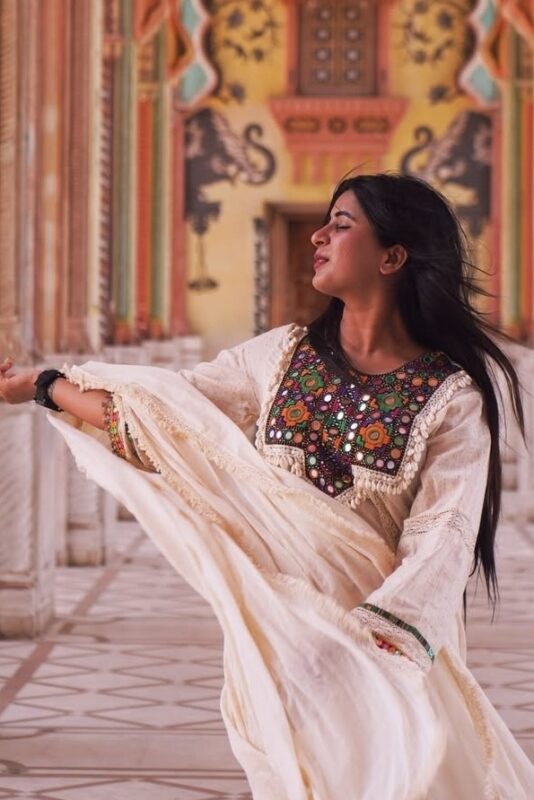 Presenting the Jashna Suit set from our pre festive 22 collection; Khushi. Crafted in pure cotton and embellished with beautiful hand embroidery ‘ahiri’ by the traditional artisans of Kutch, Gujarat . With a traditional look and contemporary fit, this set comes with a kurta, pants and a dupatta. This outfit is definitely the epitome of comfortable festive style.